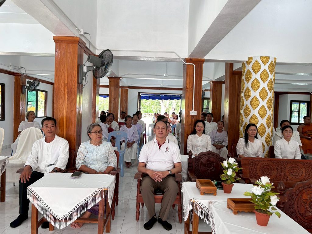 นางอัจจิมา วรรณเลิศ ครูรักษาการในตำแหน่ง ผอ.สกร.ระดับอำเภอลอง นางสาวลัดดาวัลย์ ซุ่นฮะ ครูอาสาสมัครฯ นางสาวขวัญวลี อินภิบาล ครูศูนย์การเรียนรู้ร่วมพิธีเจริญพระพุทธมนต์ถวายพระพรชัยมงคลแด่พระบาทสมเด็จพระเจ้าอยู่หัว และพระบรมวงศานุวงศ์ ประจำปีพุทธศักราช 2568 ณ วัดบ้านบ่อ ตำบลบ้านปิน อำเภอลอง จังหวัดแพร่